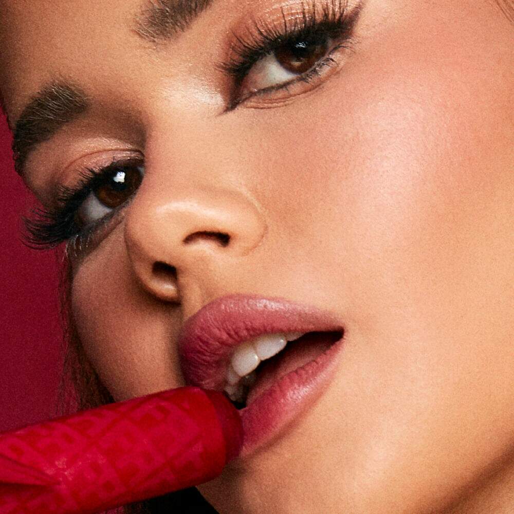TRIGLICERÍDEOS DE CADEIA MÉDIA, DECAMETILCICLOPENTASILOXANO, DISTEARDIMONIO DE HECTORITA, CARBONATO DE PROPILENO, OZOCERITA, POLIISOBUTENO, METOXICINAMATO DE OCTILA, ACETATO DE RACEALFATOCOFEROL, FENOXIETANOL, ESQUALANO, ACIDO HIALURONICO, AROMA, VERMELHO 6, ÓXIDO DE FERRO VERMELHO, ÓXIDO DE FERRO AMARELO, DIÓXIDO DE TITÂNIO.